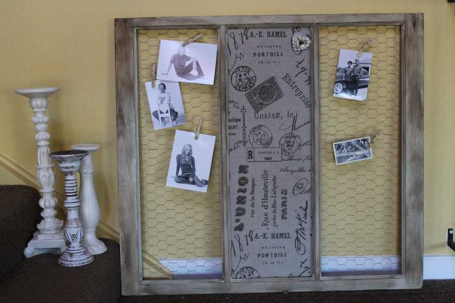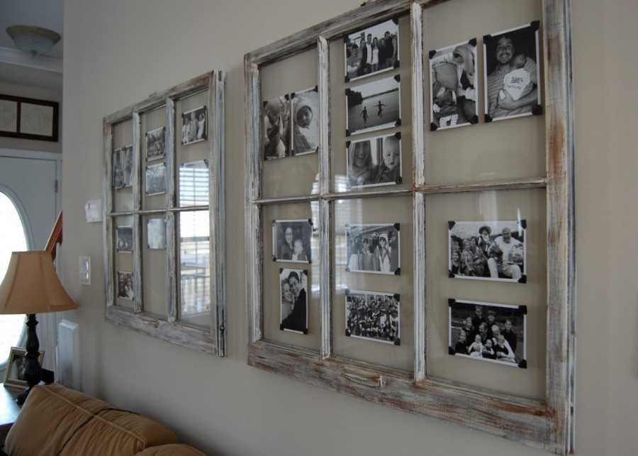 Очень нестандартное применение старой оконной рамы станет прекрасным и весьма оригинальным декором комнаты. Для изготовления настенной рамной композиции потребуется обзавестись самой рамой, краской понравившегося цвета.