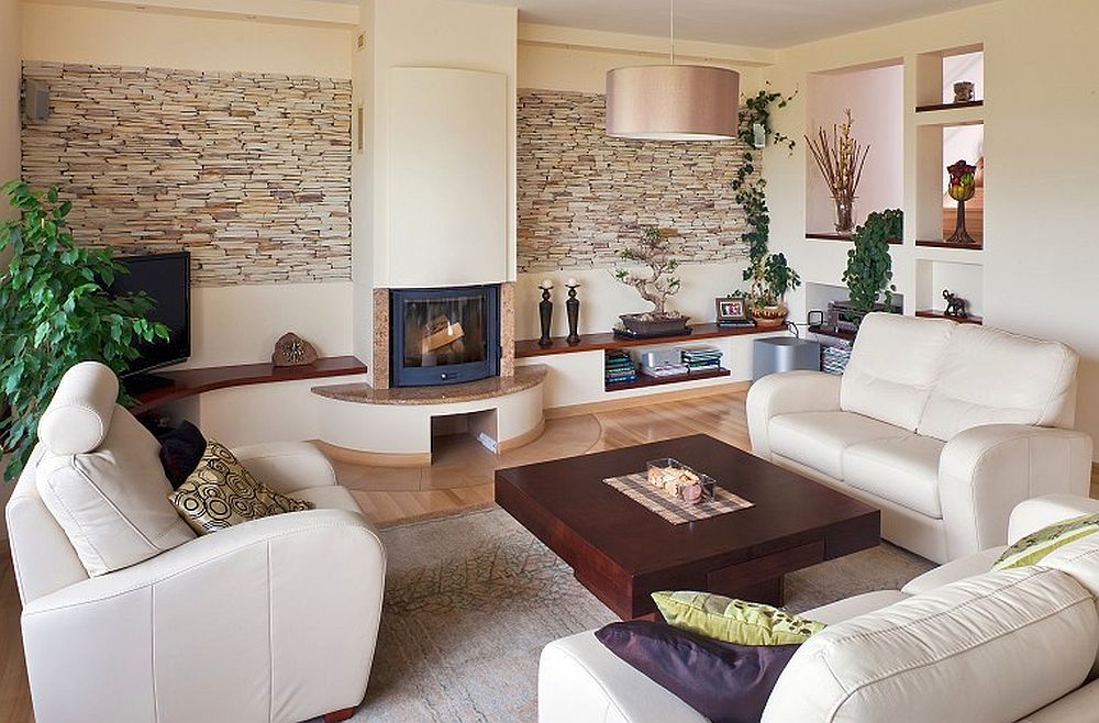 Декоративный камень в интерьере гостиной часто используется при отделке, потому что это относительно недорогой способ для обновления интерьера. Несмотря на свою простоту, такая отделка выглядит довольно эффектно. Посмотрите фото, которые мы разместили, и подберите подходящую именно вам!
