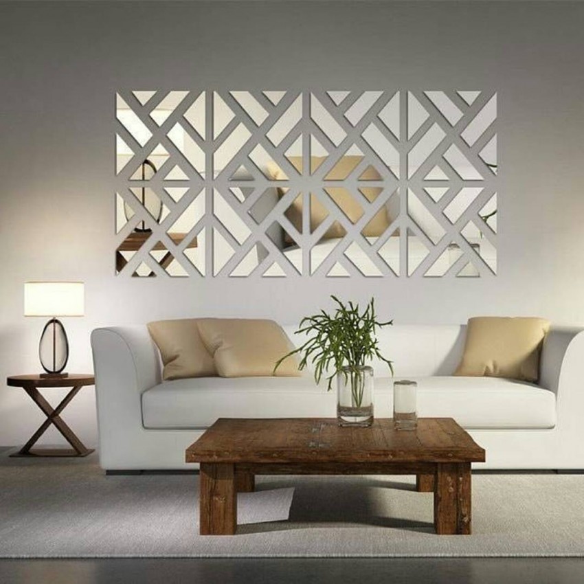 - Отличным декоративным решением будет зеркало, так как он преображает пространство до неузнаваемости, визуально расширяет квадратуру, а если разместить его напротив окна, то можно вовсе сделать зал более светлым и интересным.