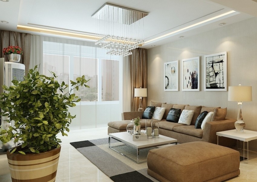Определенными гаммами цветов можно добиться и визуального изменения гостиной: для увеличения подойдут светлые тона, а если пространство большое можно использовать тёмные.