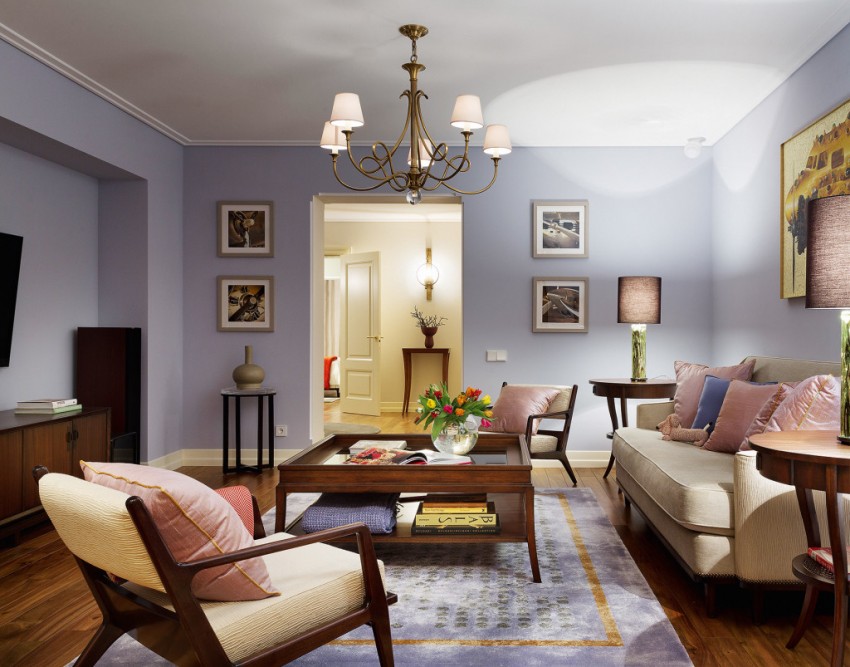 Цвета стен должны гармонировать с мебелью и декором, текстилем и общим дизайном гостиной.