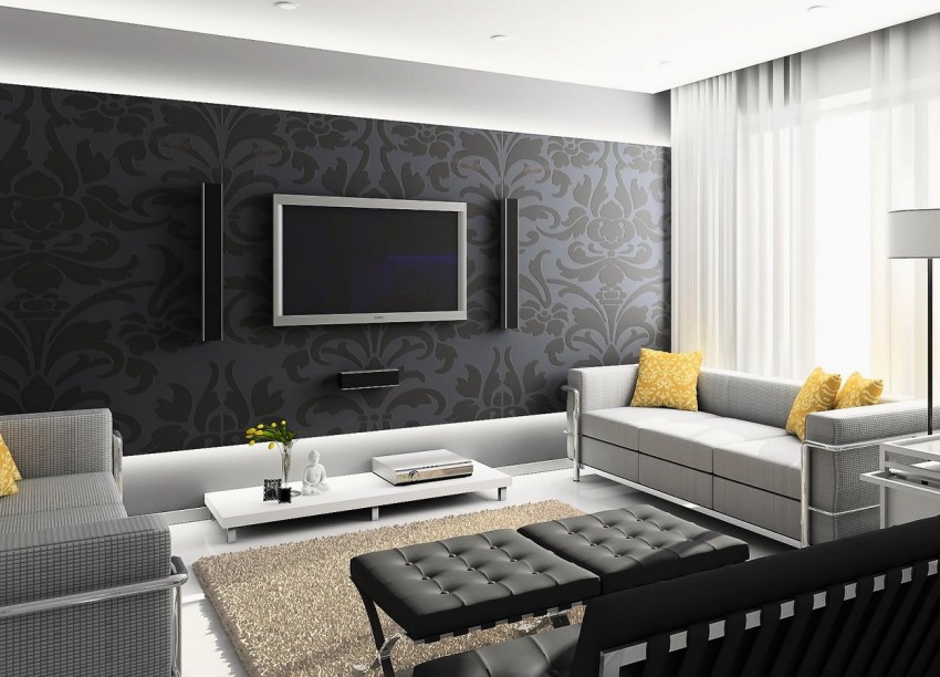 Если стены гостиной комнаты не будут однотонными, то нужно четко определиться с набором цветов еще на стадии проекта. Подобрать оттенки, выбрать главный и дополнительные, продумать акцент и помнить, что все должно сочетаться.