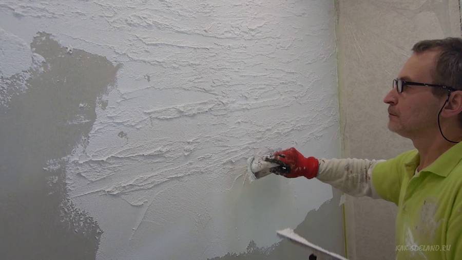 Декоративная штукатурка своими руками из обычной шпаклёвки налагается и обрабатывается теми же инструментами, что и обычные декоративные растворы.