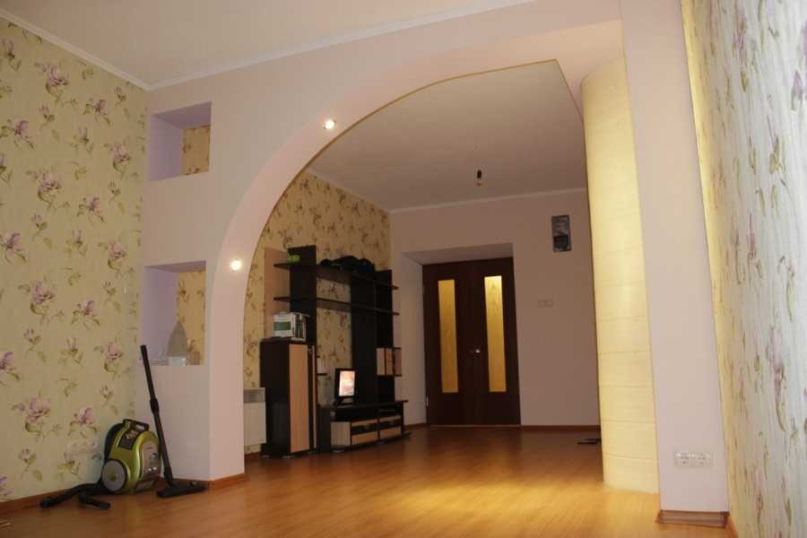 Эти арки представляют собой обычные прямоугольные конструкции, только у них углы закруглены. Если говорить об их применении, то использовать подобные арочные конструкции можно в помещениях любой площади.