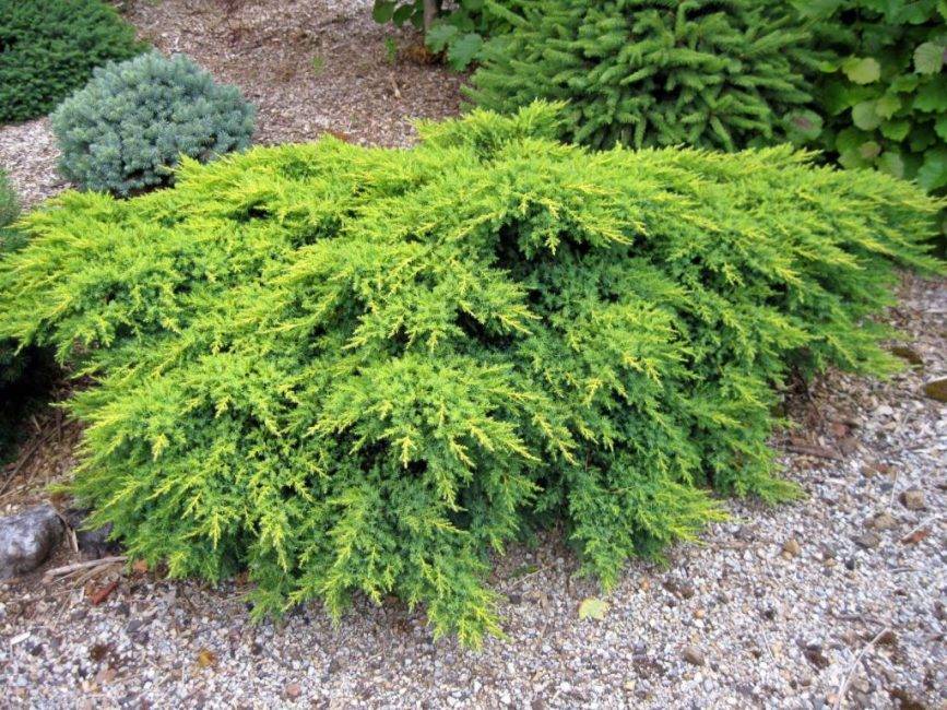 Это кустарники, которые не сбрасывают свою листву с приходом холодов и даже зимой украшают сад. Самыми распространенными на приусадебных участках России являются можжевельник, туи, жимолость.