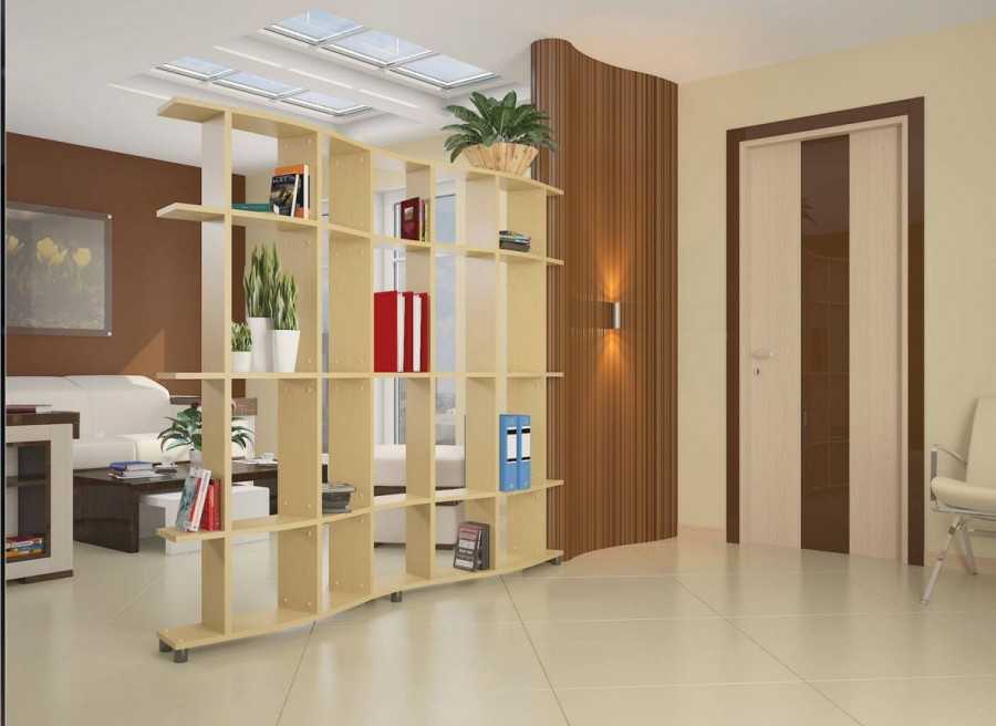 Виды конструкций стеллажей перегородок для зонирования комнаты