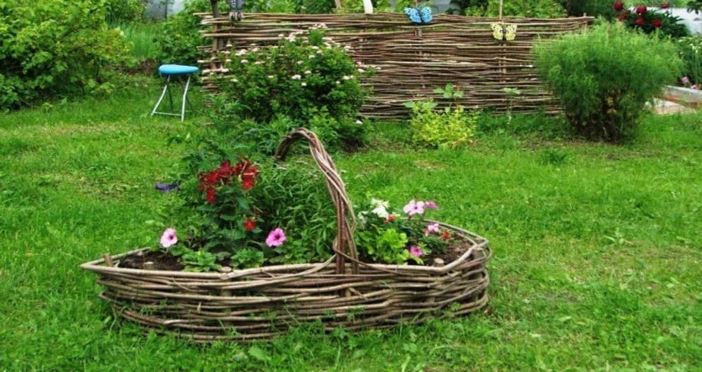 Чтобы украсить приусадебный участок, совсем не обязательно тратить много денег, можно обустроить на нем плетеную клумбу для цветов