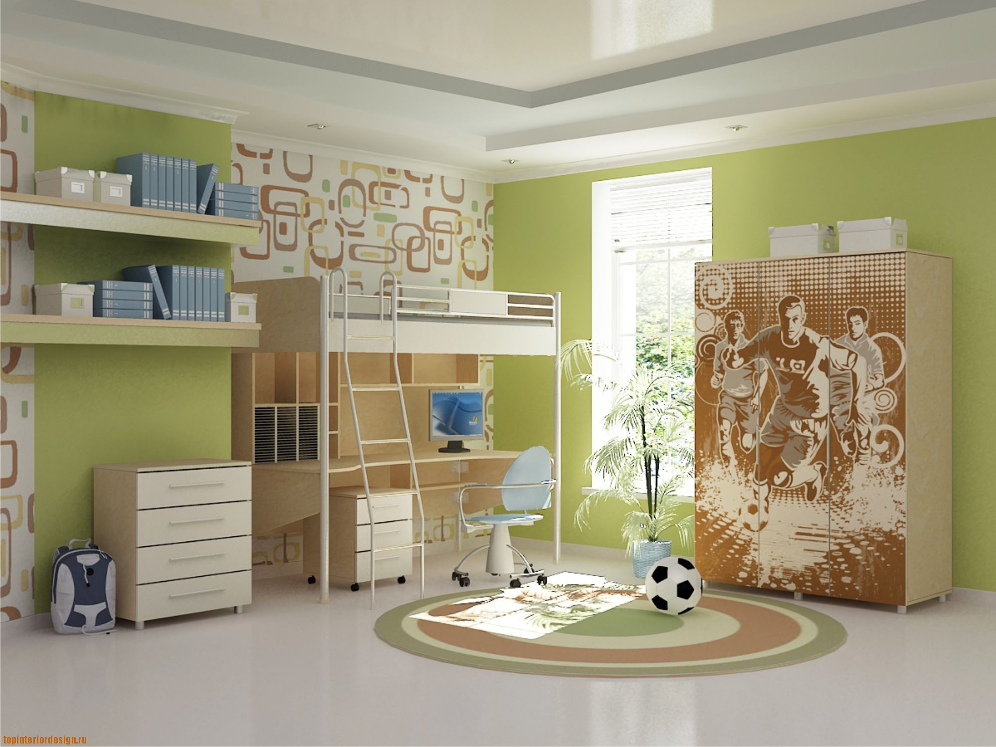 Дизайн комнаты для мальчика в зеленом цвете будет стимулировать в нем тягу к знаниям и интеллектуальному развитию. Кроме любознательности и желания учиться, зеленый также укрепляет в мальчиках уверенность в себе и придаст смелость. Но, если вы замечаете, что ваш сын склонен к излишней замкнутости, лучше откажитесь от зеленого цвета в интерьере его комнате.