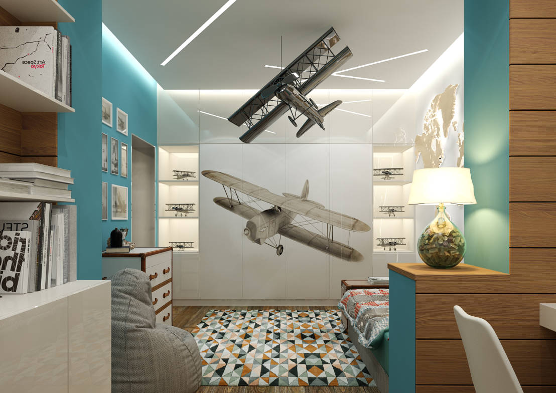В современном интерьере комнаты для мальчика не обязательно делать стиль именно таким, каким он должен быть. Разбавьте его оригинальными элементами, указывающими на то, что комната именно детская.