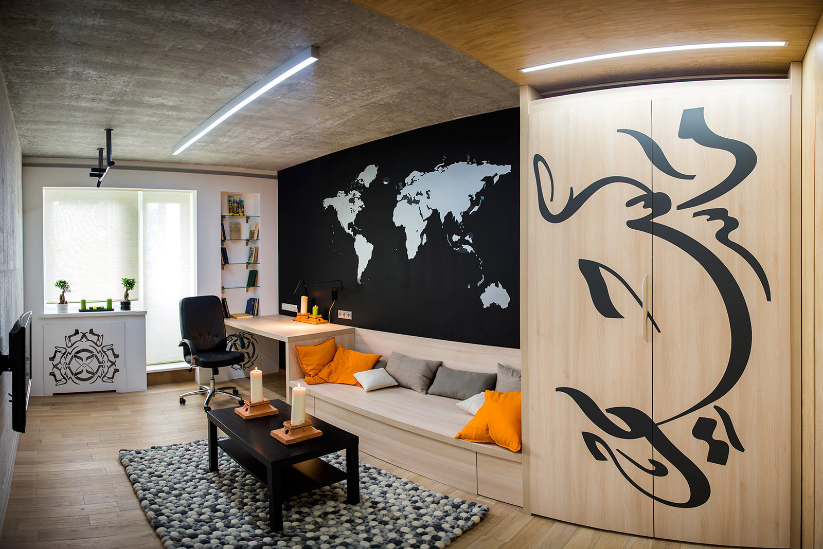 Даже если Вы будете оформлять комнату на «будущее», не нужно оформлять интерьер в ней очень скучным, но зато дорогостоящим и с определенным вкусом. Все давным-давно знают, что в юношестве практически во всем приветствуется максимализм. И в отношении вкусовых качеств, и предпочтений и уж тем более – поведения! Именно поэтому, интерьер комнаты для подростка необходимо создавать с учетом невероятных цветов и их комбинаций, форм, фактур и цветовых решений!