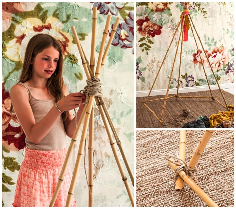 Выбор материалов в первую очередь зависит от того, где будет жить шалаш или вигвам. Если вы делаете вигвам для детей, выбор в любом случае будет за более натуральными материалами: хлопком, мешковиной и т. д. Если ребенок будет играть исключительно дома, то подойдет старая простынь или аналогичная ткань, подходящая по размеру и устраивающая по расцветке.