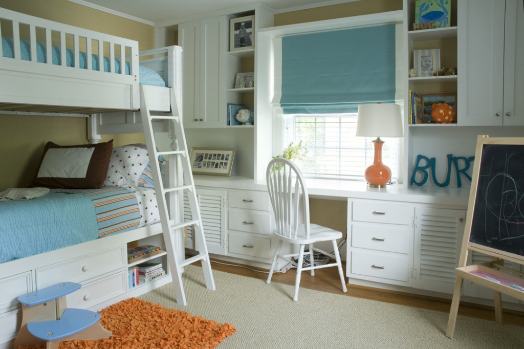 Занимает важное место в детской комнате, поскольку часто используется. Цвет обивки можно подобрать одной цветовой гаммы с отделкой помещения