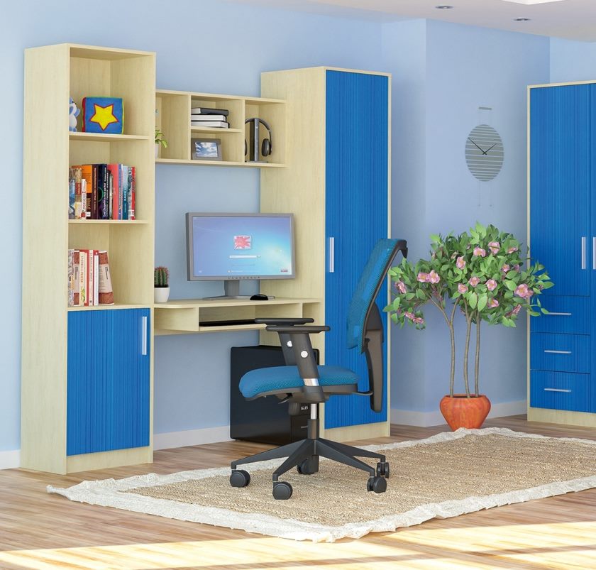 Подростковый период ознаменован малым интересом к учебе, но на данном этапе дети стремятся увлечься новыми хобби. Возможно, придется спрятать все книги и материалы в ящики, боковые щиты мебели будут увешаны постерами. В такое время ребенку необходимо личное пространство, поэтому обязательно приобретается стол под компьютер.