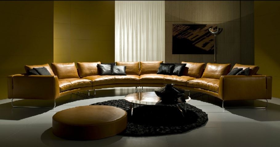 В случае решения прикупить стильный полукруглый диван большого размера, нужно понимать, что именно он становится основным акцентом просторной гостиной или другой немаленькой комнаты. Количество посадочных мест в таком случае должно быть не менее 5 – 6.