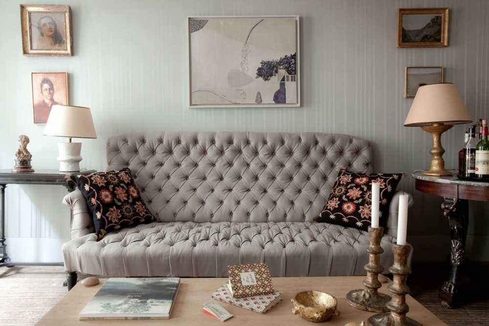 Диван в этом стиле должен быть ярким и отличаться от общей атмосферы комнаты