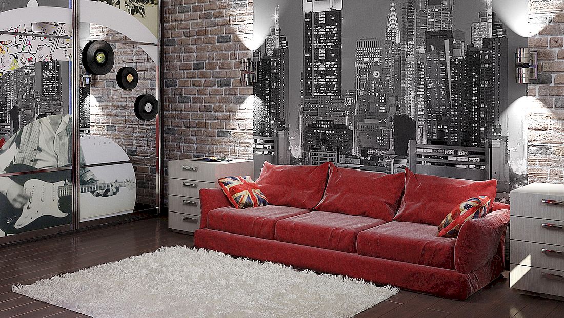 - Обивка не должна быть светлых тонов, так как активный образ жизни подрастающего поколения предполагает частые посиделки на диване с друзьями, то есть его интенсивную эксплуатацию.