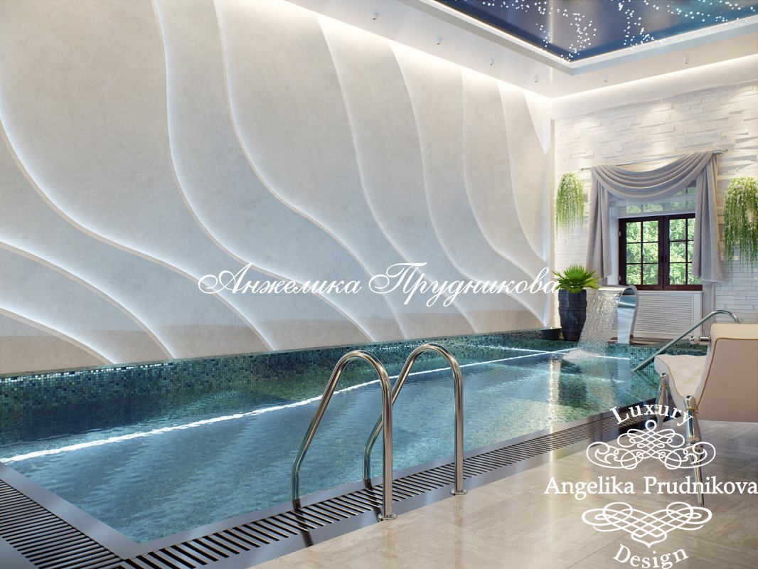 Выбирая стиль для бассейна, необходимо учесть и общую концепцию интерьера коттеджа или загородного дома (или как минимум смежных с бассейном комнат), ландшафт, размеры участка. Два самых популярных направления в дизайне интерьеров бассейна — классический и современный. Последний, в свою очередь, представлен разными ветвями. Остановимся подробнее на каждом из них и покажем примеры бассейнов, спроектированных дизайнерами студии.