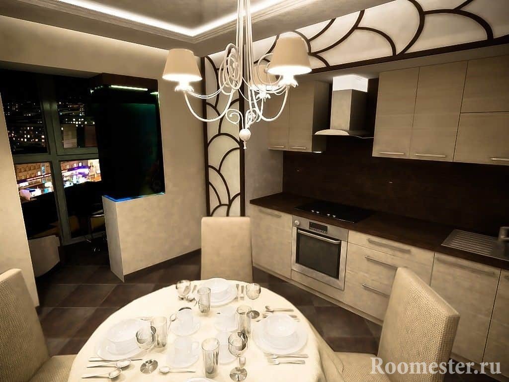 В случае совмещения со столовой в дизайне кухни стоит уделить максимум внимания созданию зон.