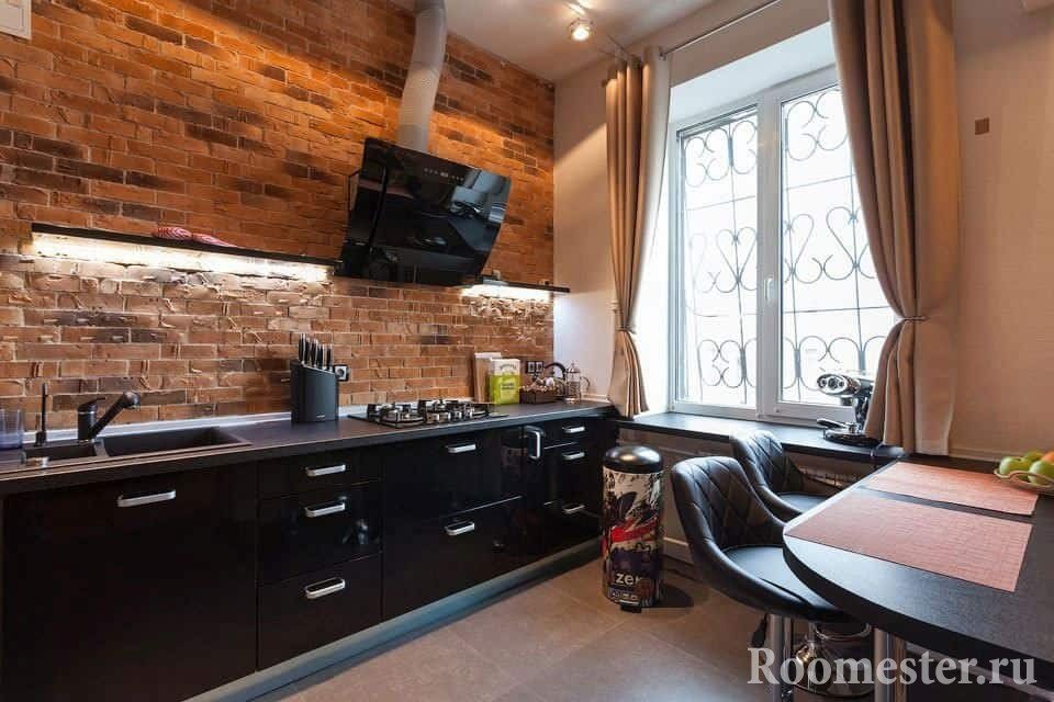 Небольшую городскую кухоньку надо зрительно увеличить. С такой целью можно расширить или убрать дверной проем, заменив его аркой либо шторкой. Для экономии места ставят раскладной стол и стулья, или выносят обеденную зону в другую комнату. Лампы дневного света, зеркало и металлические детали сделают пространство визуально больше. Горизонтальные рисунки «расширят» комнатку, а вертикальные «приподнимут» потолки.