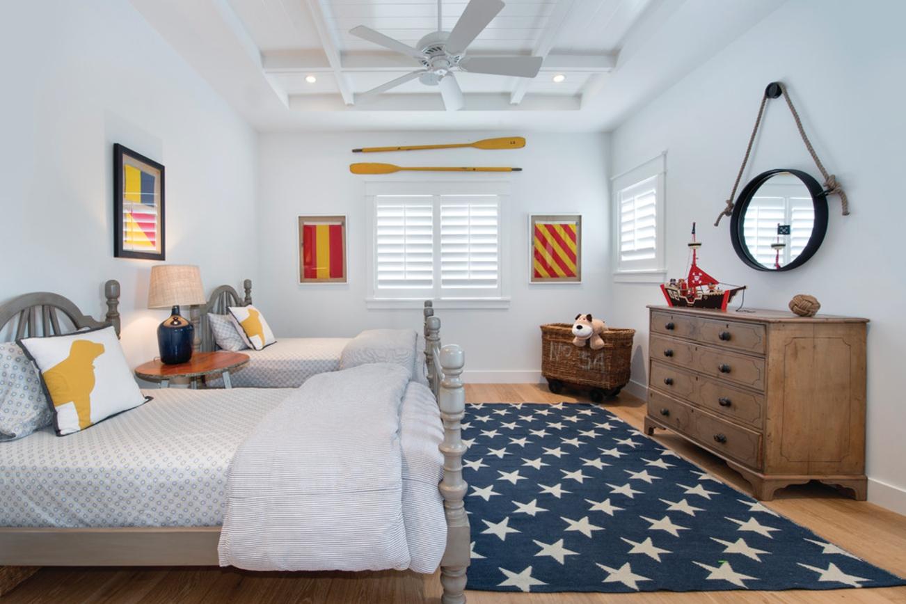 Морской стиль – одна из самых модных тенденций в дизайне интерьера в комнатах для мальчиков. Отражая тоску по курортному отдыху, морским приключениям и поискам сокровищ – этот декор принесет много радости двум братьям.