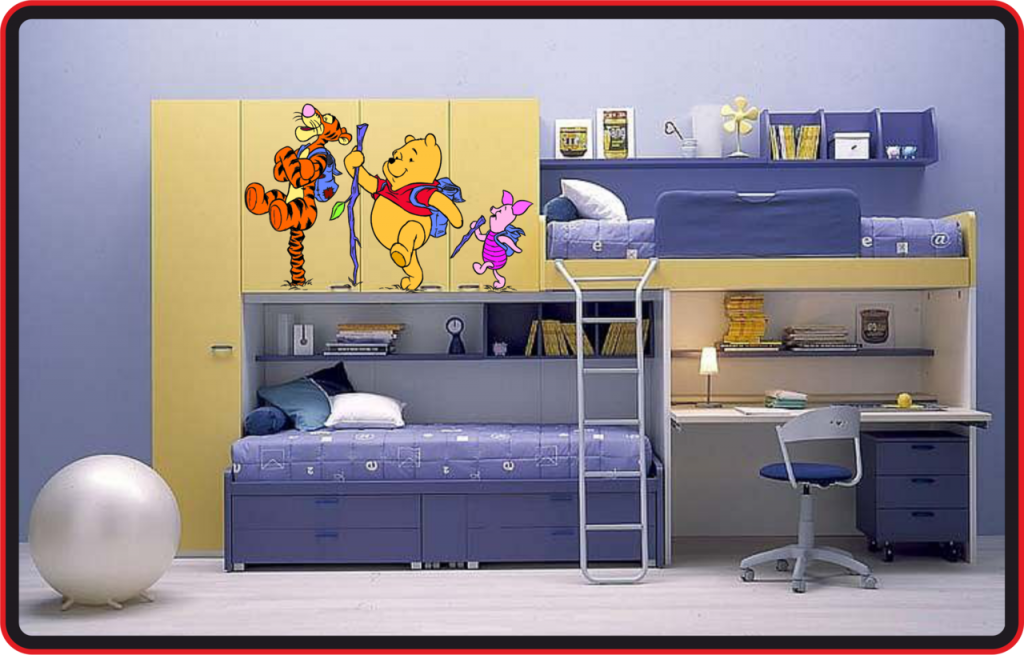 В декорировании интерьера также применяют дизайн с символикой любимых спортивных команд, анималистические рисунки и узоры, кровати, в виде корабля, машинки, лодки и прочего. Спальню мальчиков-двойняшек равных по возрасту, можно объединить под один стиль, а в комнате близнецов, использовать отзеркаленное оформление с одинаковыми декоративными и мебельными элементами.