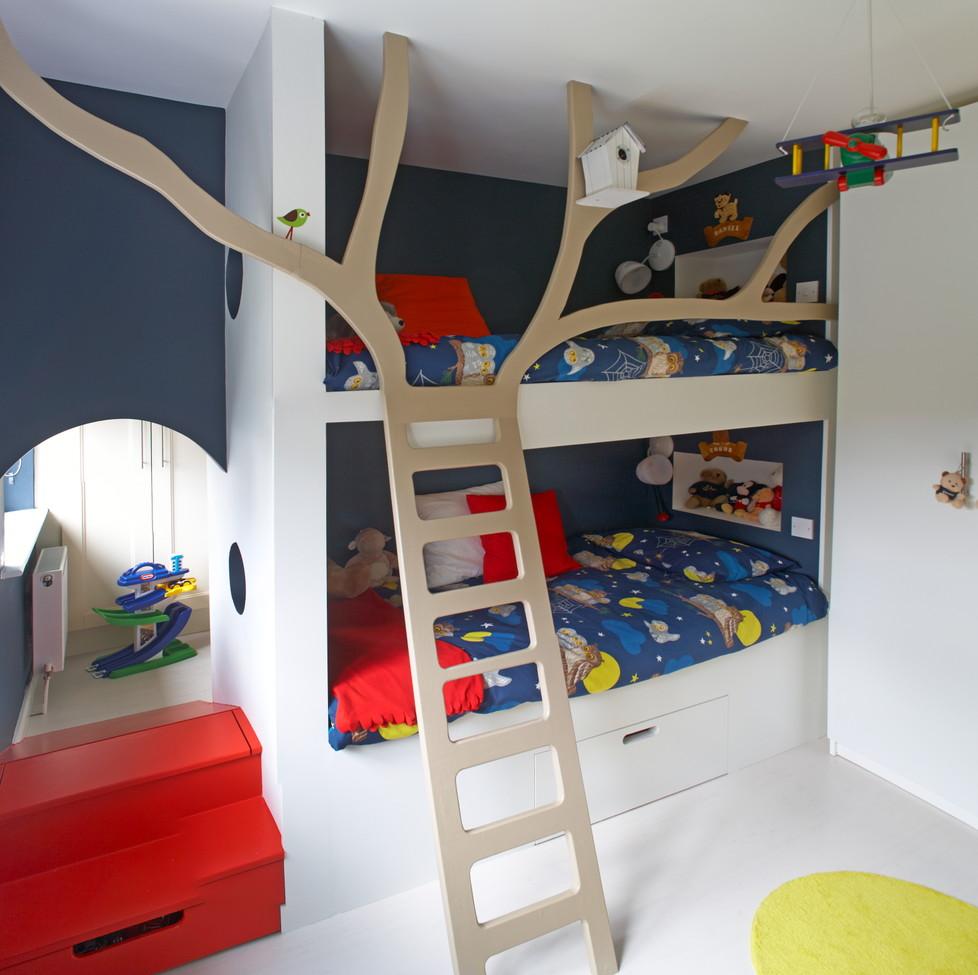 Дизайн детской комнаты для двух мальчиков с кроватью из фанеры