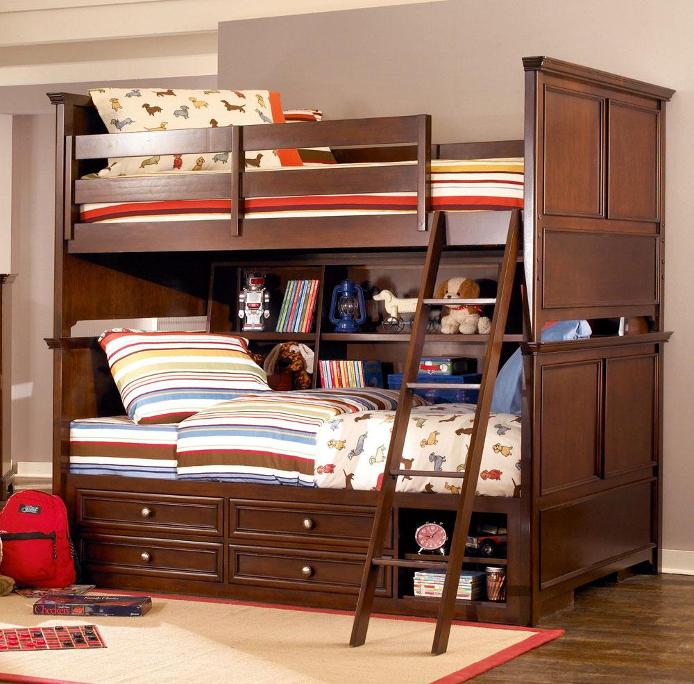 Дизайн детской комнаты для двух мальчиков с дубовой кроватью