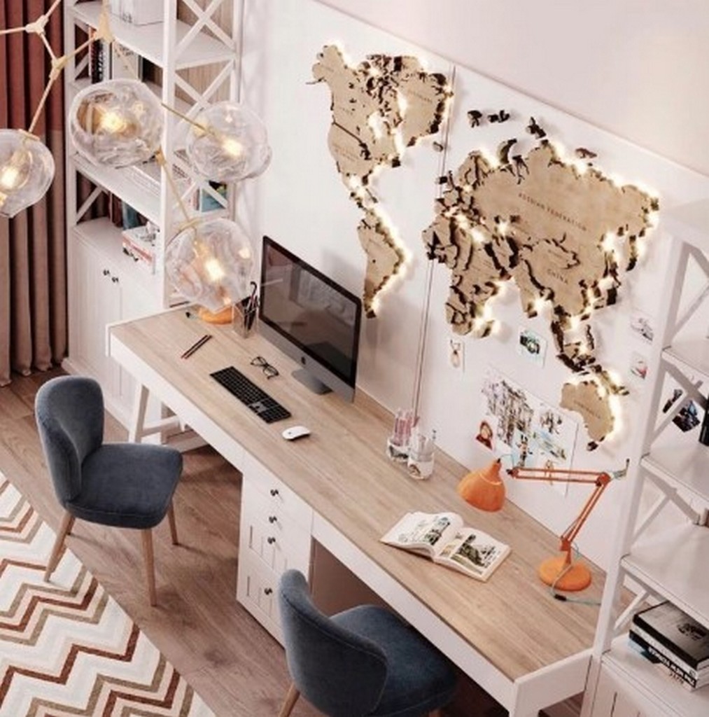 - Верное обустройство рабочего места. Не допускаются кричащие оттенки. В этой зоне ребенку должно быть удобно работать. Желательно на рабочий стол поставить компьютер или ноутбук.