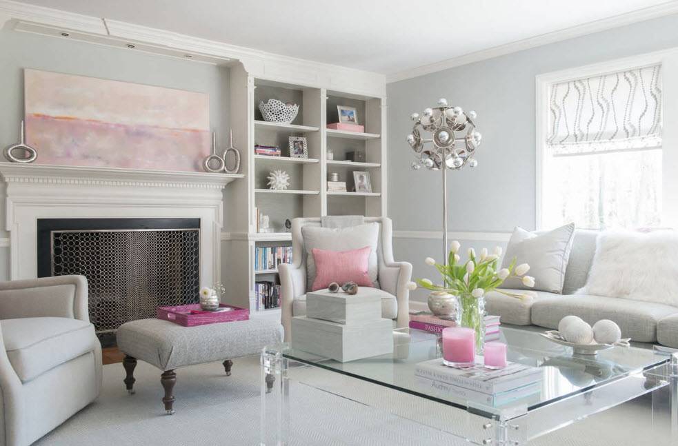 Серая. Эта палитра широко применяется дизайнерами как в выборе отделочных материалов, так и предметов мебели. Чтобы интерьер получился необычным, достаточно сделать стены серыми и приобрести декорации точно такого же цвета, но с различными оттенками. Кроме этого, такой цвет прекрасно гармонирует с яркими композициями, благодаря которым дизайн получится оживленным.