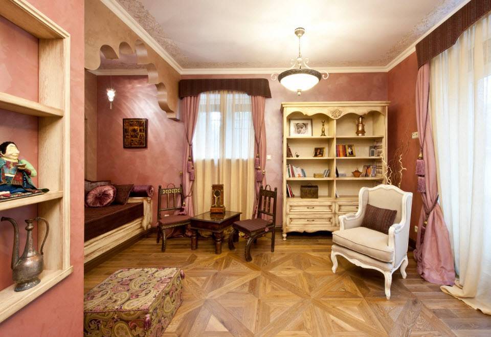 В комнате очень уютно. Здесь царит спокойствие и полумрак. Цветовая гамма обычно приглушённая, тёплых тонов.