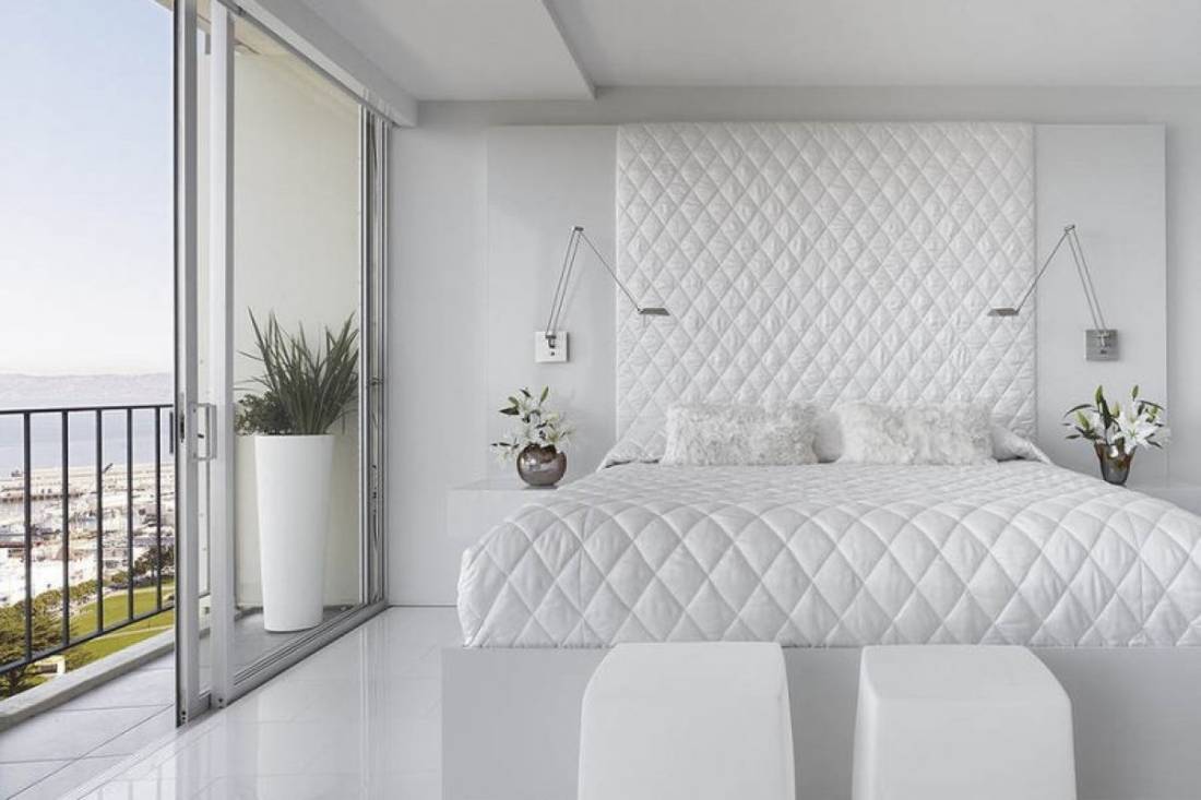 Большинство наших квартир не может порадовать нас большим и просторным помещением спальни. Зрительно увеличить площадь поможет использование светлых оттенков. Применение белого цвета в спальне позволит наполнить комнату позитивом, уютом и покоем. В таком помещении сон будет более спокойным и глубоким. Чтобы белая спальня не ассоциировалась у вас с больничной палатой, рекомендуем разбавить интерьер другими мягкими пастельными тонами – розовым, сиреневым, бежевым или голубым. Дополнение интерьера яркими небольшими элементами декора и живыми цветами придаст помещению нотки гармонии и оригинальности. Приобретая в спальню множество разнообразных милых сердцу безделушек, помните – главное не переусердствовать и не захламить небольшое помещение.