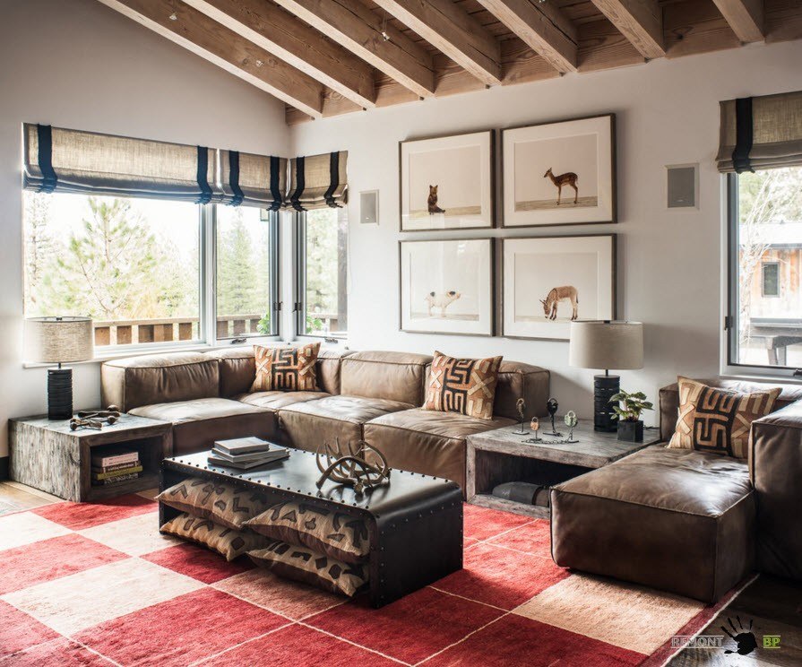 Общую стилистику дизайна интерьера деревянного дома из бруса создают отдельные элементы — украшения стен, обивка мебели, специальные приемы в отделке помещения. Таким элементом могут стать следующие предметы интерьера.