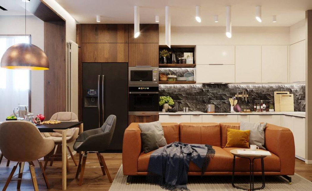 - по той причине, что гостиная будет иметь кухню, все помещение должно быть идеально чистым. А это значит, что придется каждый день проводить уборки;