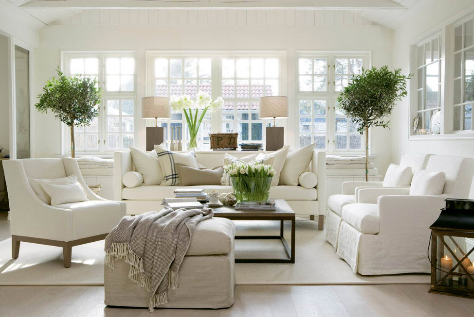 Оттенки белого прекрасно сочетаются с самыми сложными и яркими тонами, поэтому с ним очень легко работать даже неопытному декоратору.