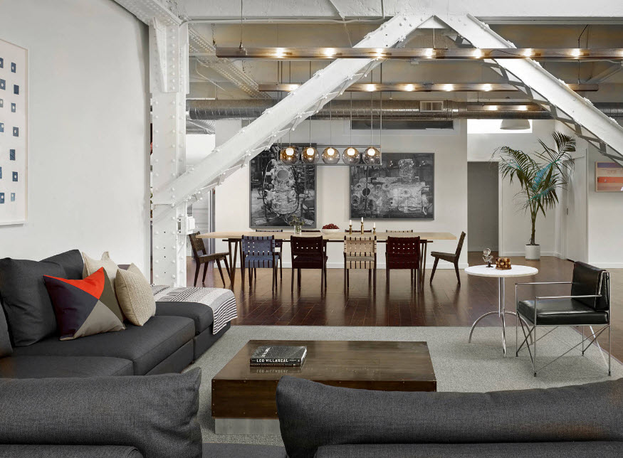 Оформление гостиной в стиле «лофт» – наполнение комнаты нетрадиционными предметами с отсутствием шика.