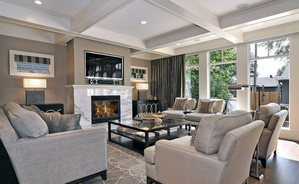 Если гостиная будет использоваться в качестве места, где вся семья будет регулярно проводить время вместе, стоит в первую очередь задуматься о комфорте. Если параметры помещения позволяют, рекомендуется разместить вместительный, мягкий диван напротив небольшой стойки с телевизором. Это классической расположение элементов мебели.