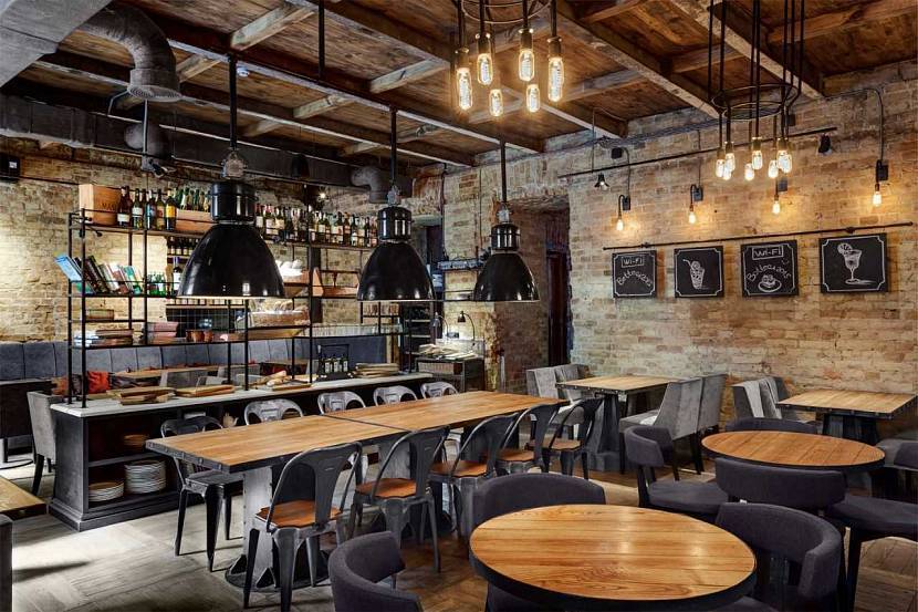 Интерьер кафе-ресторана с применением промышленного дизайна