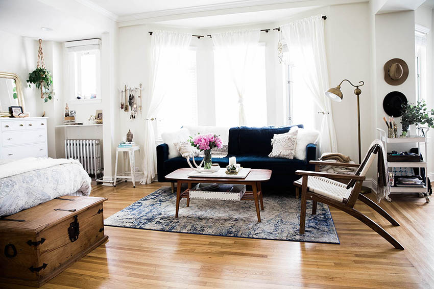 Нелегко зонировать помещение небольшой квадратуры под спальню и гостиную. Но это возможно с помощью правильно выбранной мебели.