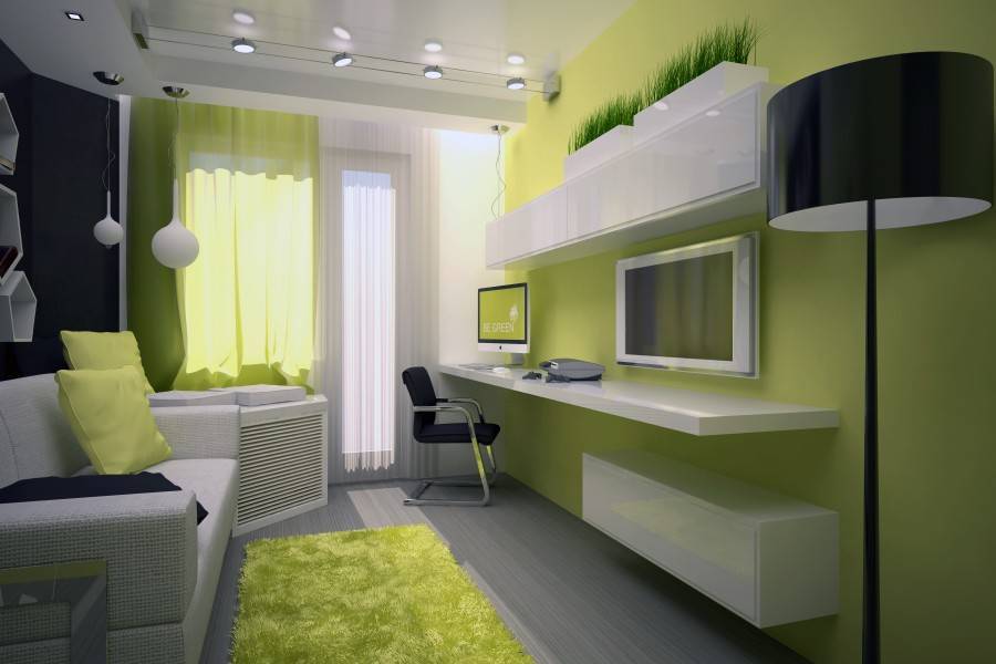 - Обеспечить нужное количество света. Часть комнаты, которая ближе к окну, получает большую часть света, а отгороженная от окна часть комнаты должна освещаться искусственно