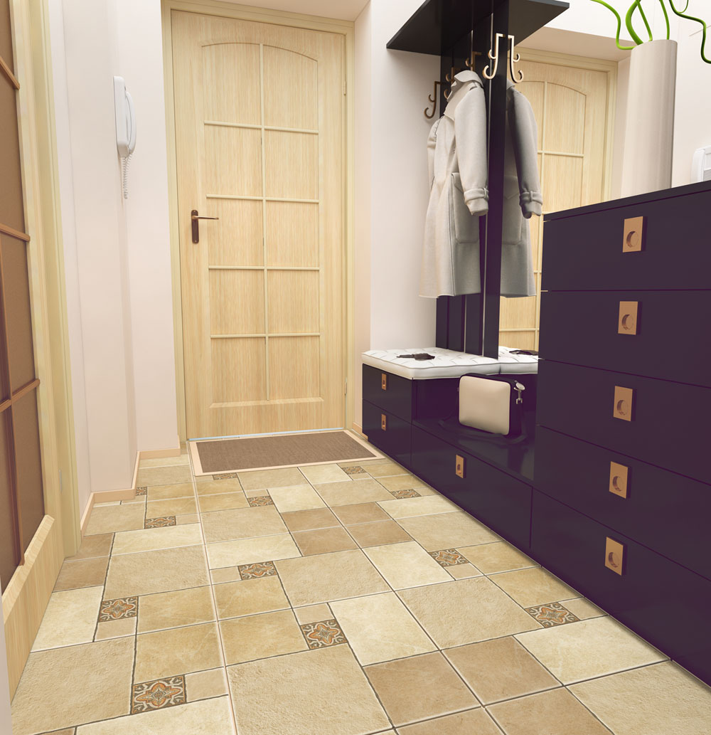 - Вся уличная грязь на обуви тянется и оседает в прихожей. Это помещение наравне с кухней моется чаще остальных. Керамическая или плитка из керамогранита не боятся ни воды, ни моющих средств. На их внешнем виде частая уборка тоже не скажется.