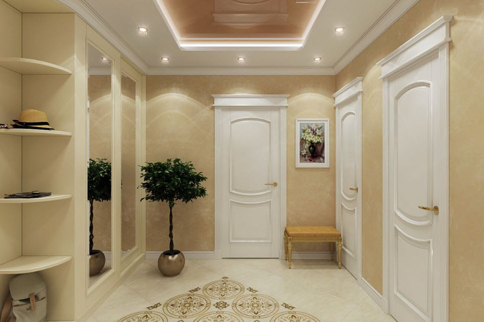 Потолок играет существенную роль в общем интерьере. В коридор можно выбирать варианты потолочного покрытия, идентичные вариантам в жилых комнатах. Обычно применяют такие виды потолков.