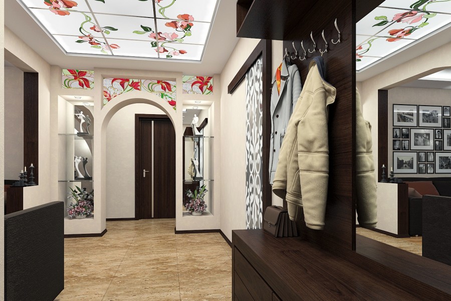 Витражи могут украшать как стены, так и потолок прихожей