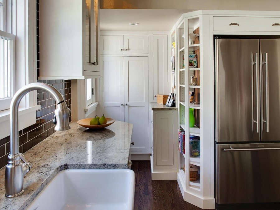 Любители радикальных решений могут и вовсе убрать этот предмет бытовой техники из кухни. Например, в находящийся рядом коридор или на лоджию. Но следует помнить, что в этом случае во время приготовления пищи придётся либо брать всё и сразу, относя это на рабочую поверхность, либо каждый раз совершать марш-бросок через всё помещение, что может быстро надоесть.