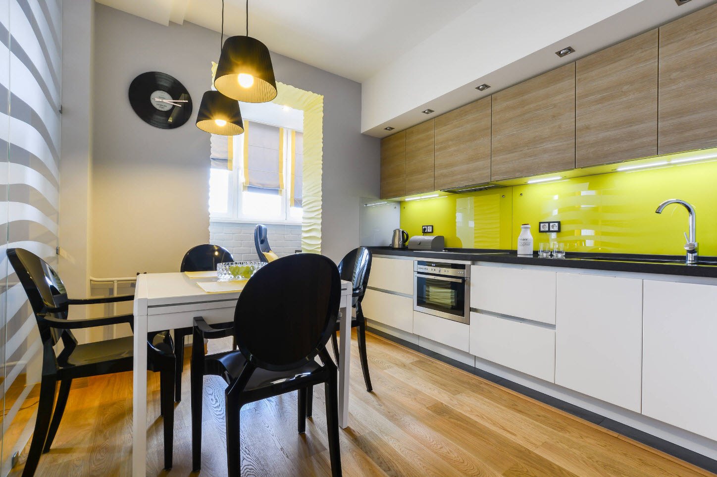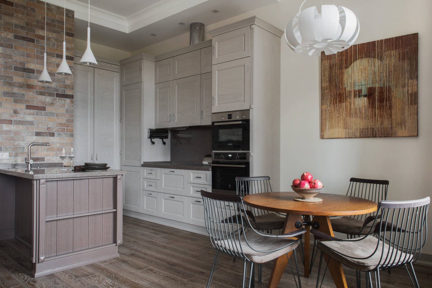 Возможность вынести зону приёма пищи за пределы кухни значительно облегчает задачу дизайнера. Однако в большинстве случаев это просто невозможно. Но и в этом случае залогом успеха станет функциональное, но не визуальное отделение рабочего пространства от обеденного.
