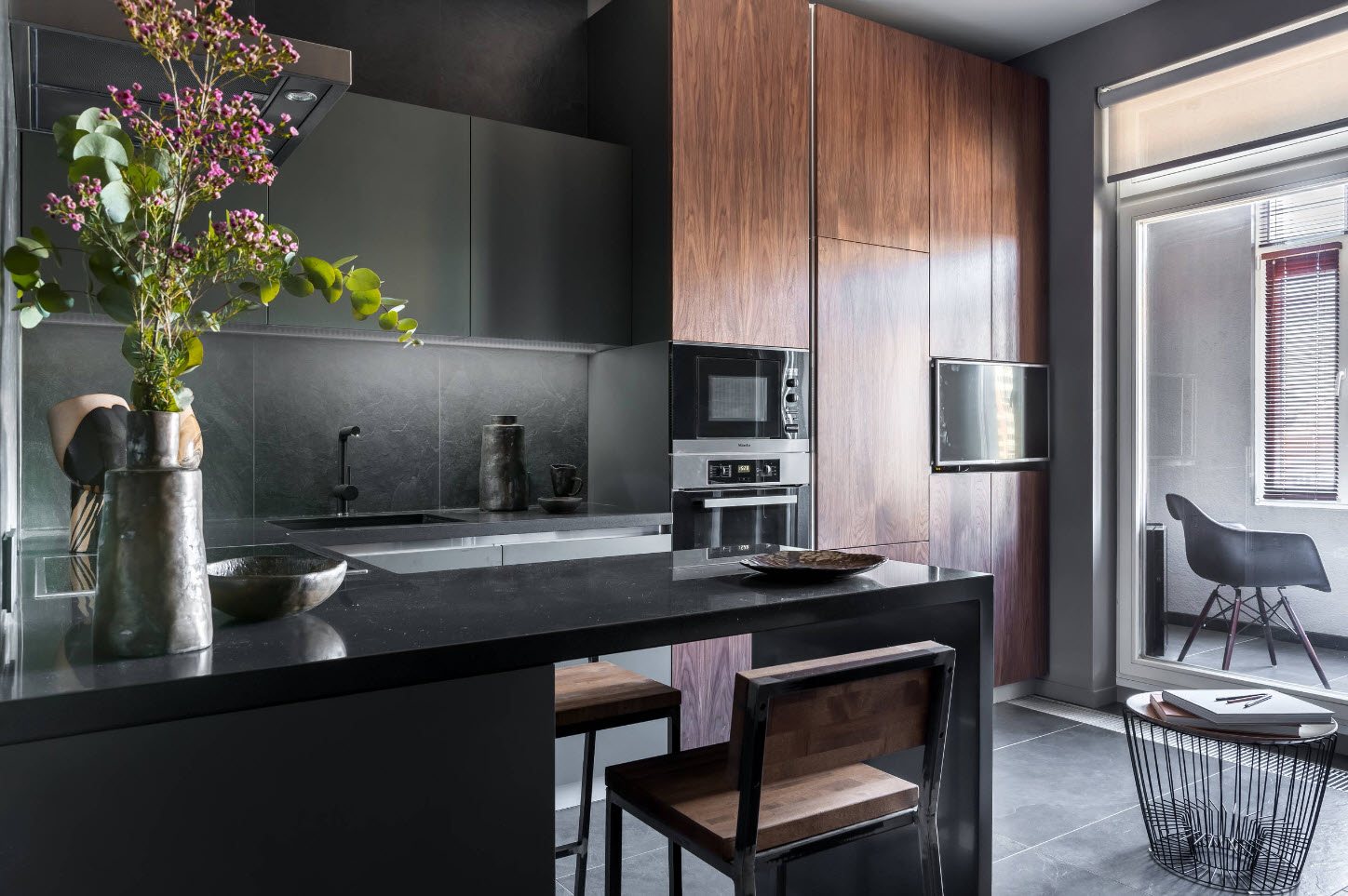- В некоторых случаях уместными будут барные стойки – они не только экономят пространство, но также выглядят стильно и современно.