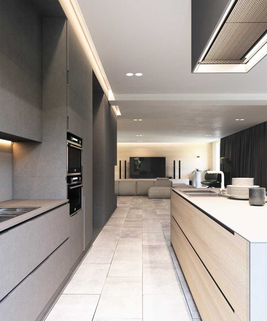 При этом нужно учитывать, что чаще всего таким способом можно установить небольшое количество элементов, поэтому для тех, комму нужно много мест для хранения или множество техники, этот вариант не подойдет. Линейная планировка требует компактности и установке умных систем.