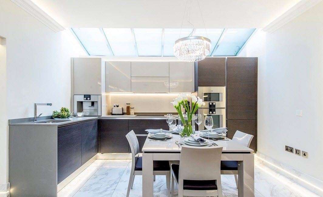 Двухлинейные. Как правило, применяются для узких и длинных помещений. Мебель кухонного гарнитура располагается вдоль противоположных стен. Это позволяет оптимизировать пространство, вместить больше техники, посуды в шкафчики.