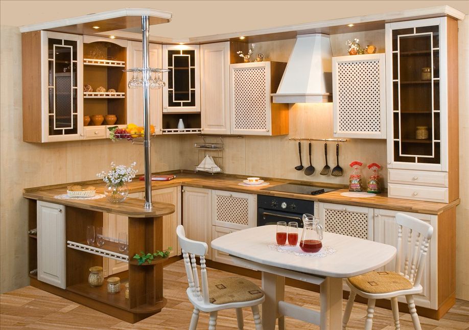 Барная стойка. Может выполнять как традиционную функцию, так и дополнительные – в качестве альтернативы обеденному столу и дополнительной рабочей поверхности. Барную стойку используют также для зонирования и размещения кухонных приспособлений.