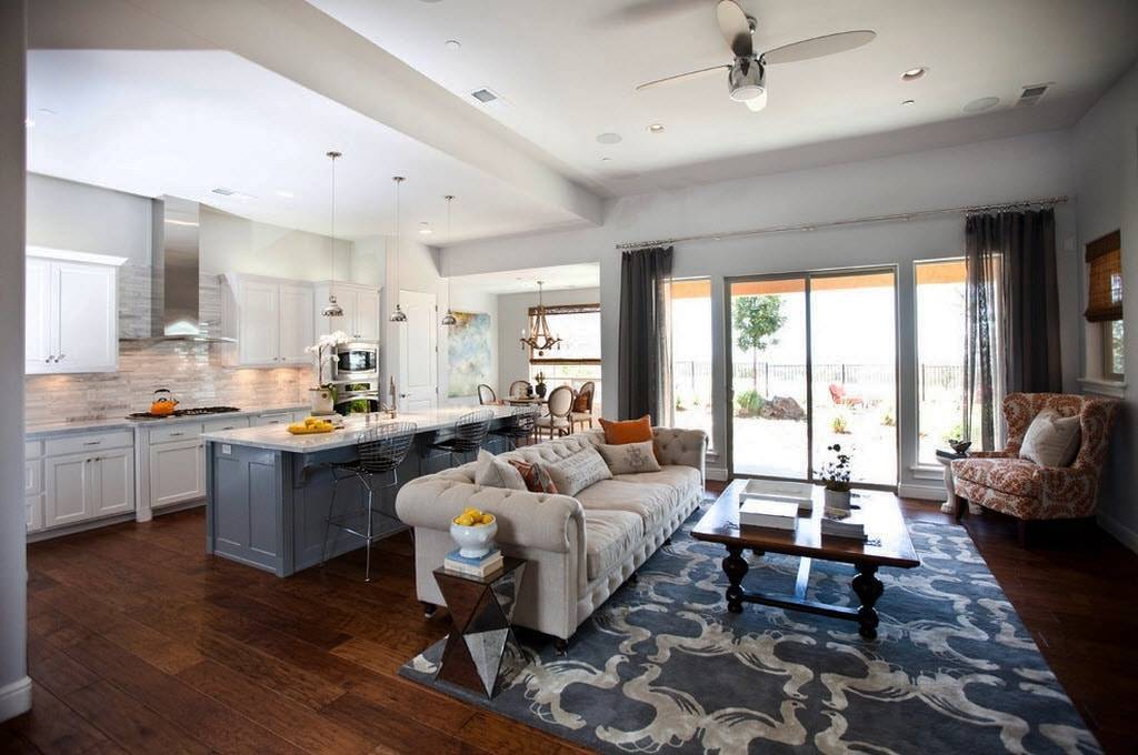 Способы зонирования пространства в совмещенной кухне с гостиной