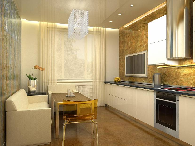 Красивая неоклассическая кухня 9 метров: дизайн с диваном в хрущевке